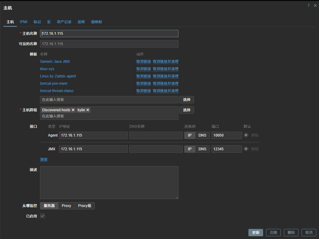 -Djava.rmi.server.hostname=172.16.1.9" #是tomcat主机的IP地址,不是zabbix