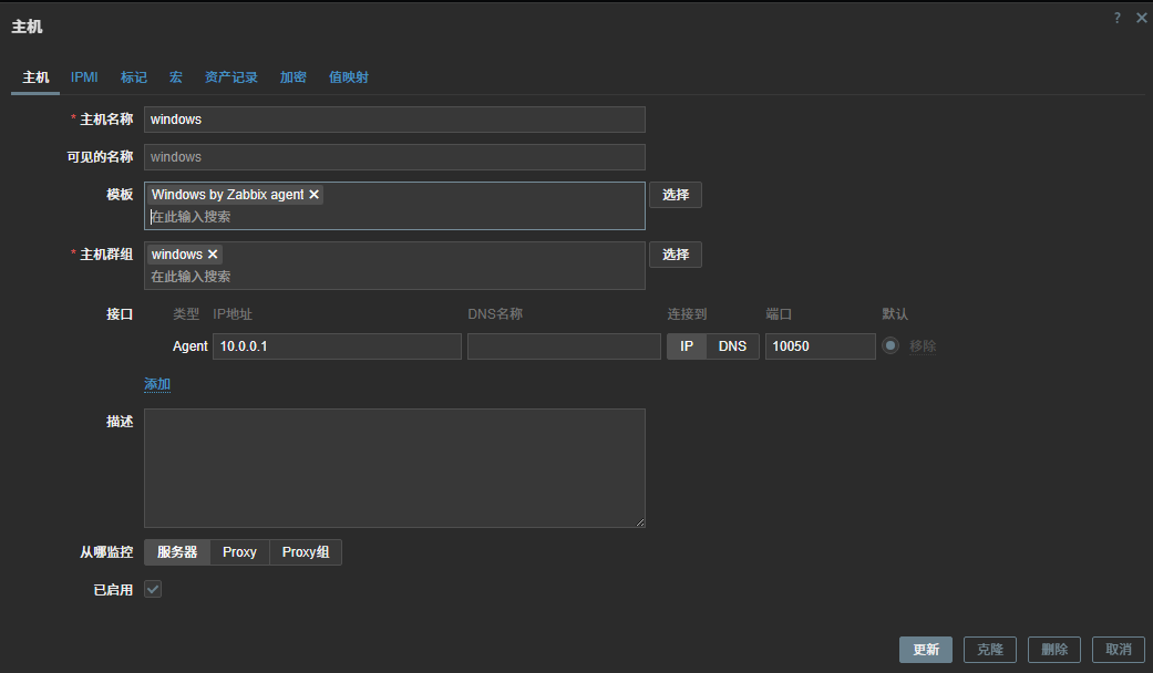 Zabbix server IP/DNS:填写zabbix server端的IP