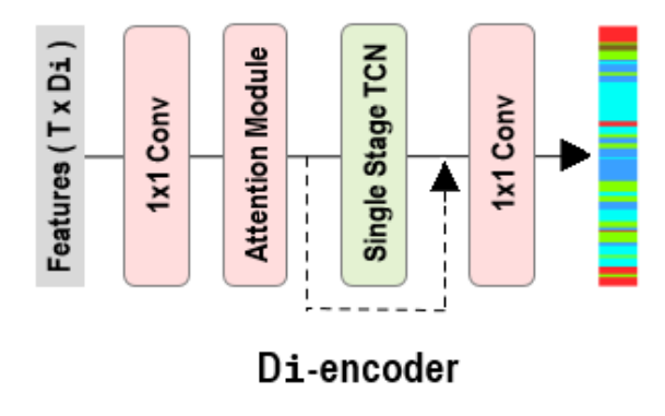 然后通过多级时间卷积进一步改进校正的预测。作为后处理,我们可选地再次应用边界校正,随后是分段平滑方法,该方法使用连续预测之间的相似性度量来移除分段内的离群类。