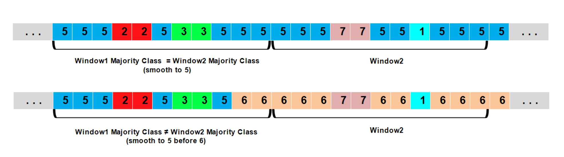 - 情况2:窗口2的大多数类别和窗口1的大多数类别不同,就把窗口1里除了窗口2大多数类以外的值改为窗口1的大多数类