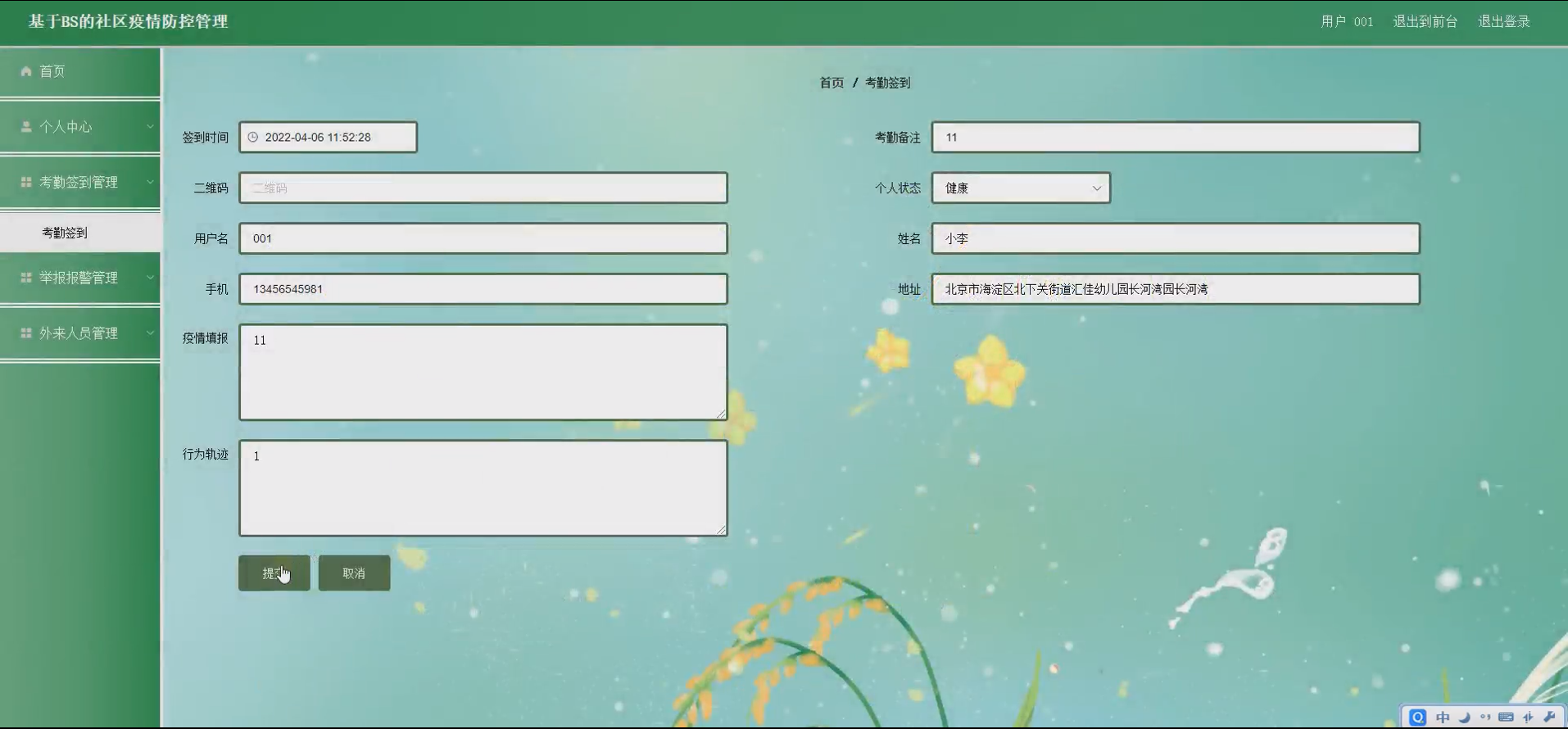 疫情报备是社区掌握疫情动态的重要环节,包括住户体温异常报备、行程报备、接触史报备等内容。现有报备方式多为住户电话联系社区工作人员,或前往社区服务中心现场登记,流程繁琐且耗时。对于社区工作人员而言,需要手动整理报备信息并逐级上报,信息传递环节多、速度慢,可能导致疫情处置不及时,增加疫情扩散风险。同时,纸质报备信息难以长期留存和快速统计分析,不利于疫情防控工作的复盘与总结。