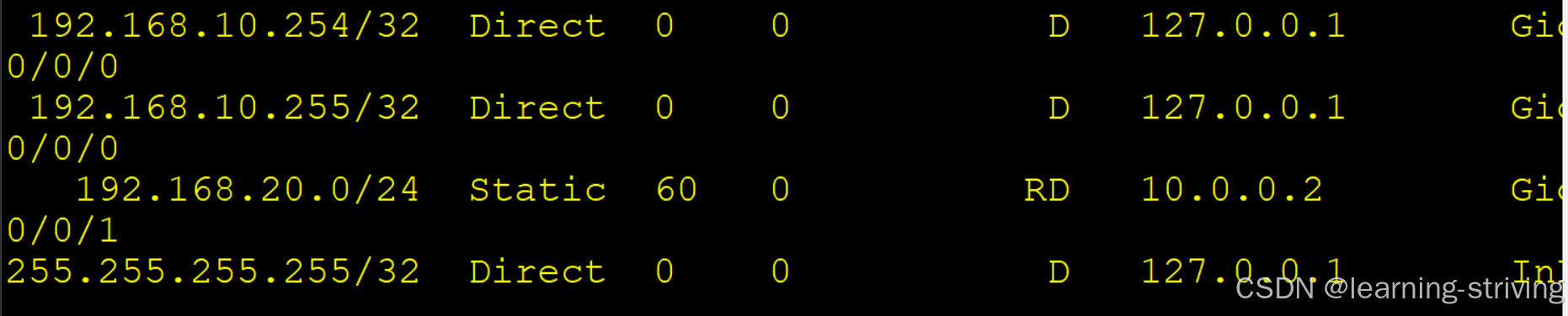 # 目的网络和掩码均为0.0.0.0表示缺省路由