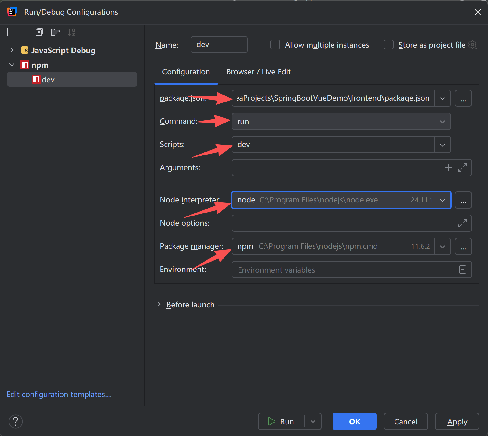 Node interpreter是Node.js的位置,通过选择不同位置可以选择版本