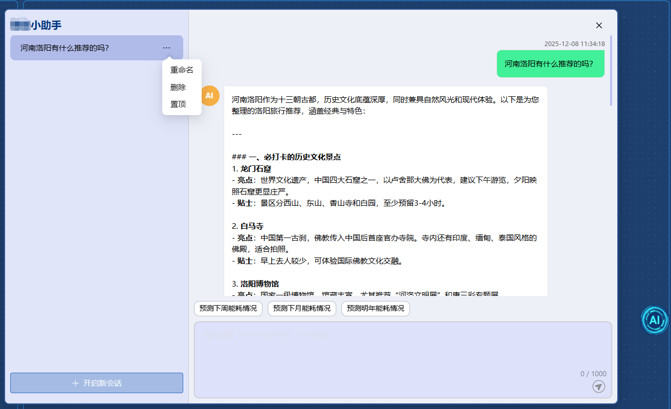 后端接口实现:对话标题修改,对话内容返回等等。