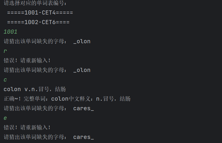 (2) 随机抽取单词并隐藏一个字母