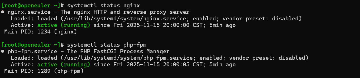 我们选择 Nginx + PHP-FPM + WordPress 这一经典组合作为评测场景,它能代表绝大多数动态网站应用。我们将使用 openEuler 官方软件源中的软件包进行安装,以体现其生态的便捷性。