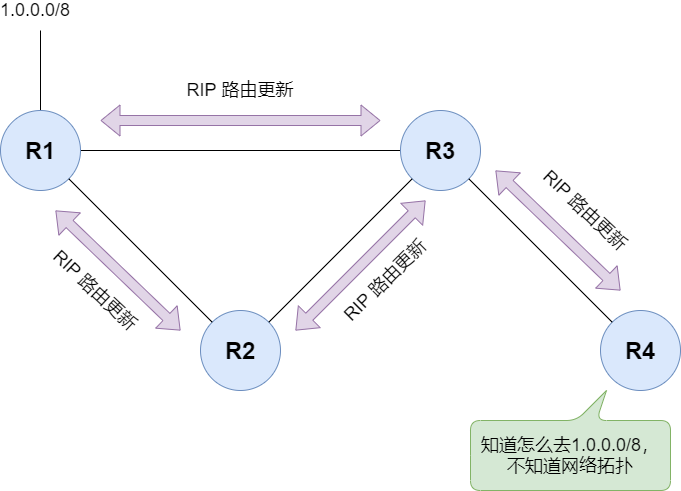 这些都是因为 RIP 路由器并不了解整个网络的拓扑结构,使得网络中非常容易出现环路,路由环路对网络而言也是危害巨大,因此从网络设计和协议设计都要考虑到环路的可能性,并加以规避。