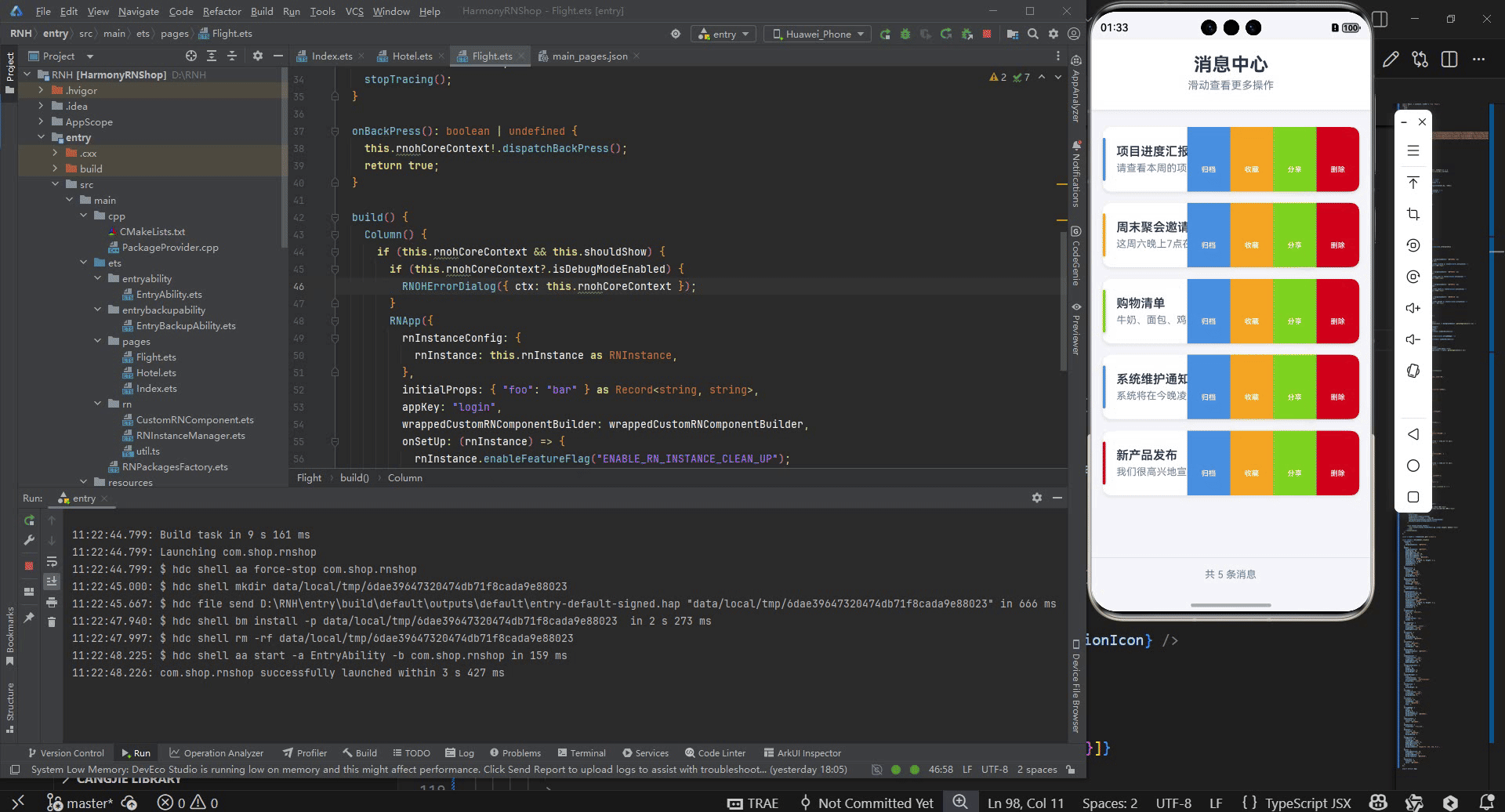 如果你需要更深层次的集成或者性能优化,可以考虑将部分组件用原生代码(如Java/Kotlin for Harmony或 Swift/Objective-C for Harmony)实现,然后通过React Native的桥接机制调用这些原生模块。这种方法较为复杂,通常只在需要高性能或特定平台功能时采用。例如,你可以使用React Native的桥接API创建一个自定义的滑动单元格模块。但考虑到鸿蒙OS的开发环境和工具链与Android不完全相同,这种方法可能需要额外的适配工作。对于鸿蒙OS,你可能需要查看华为提供的HarmonyOS DevEco Studio和对应的SDK文档来了解如何开发原生模块。