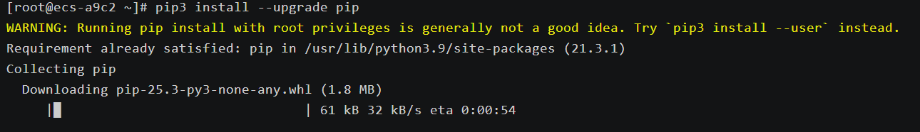 我们使用这个代码不会卸载系统自带 pip,而是直接覆盖安装到相同位置。