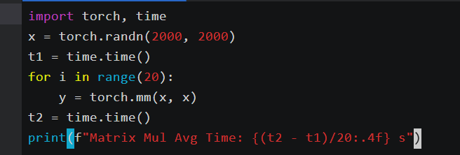 print(f"Matrix Mul Avg Time: {(t2 - t1)/20:.4f} s")