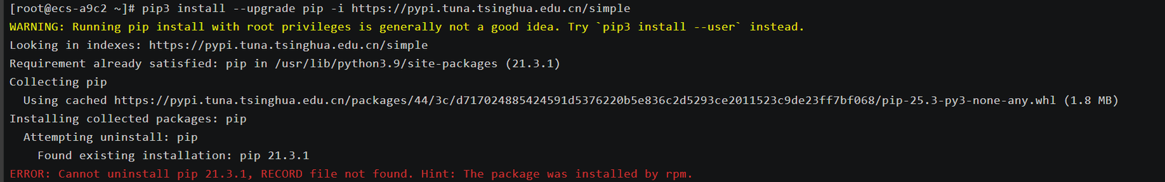 pip3 install --upgrade pip --ignore-installed -i https://pypi.tuna.tsinghua.edu.cn/simple