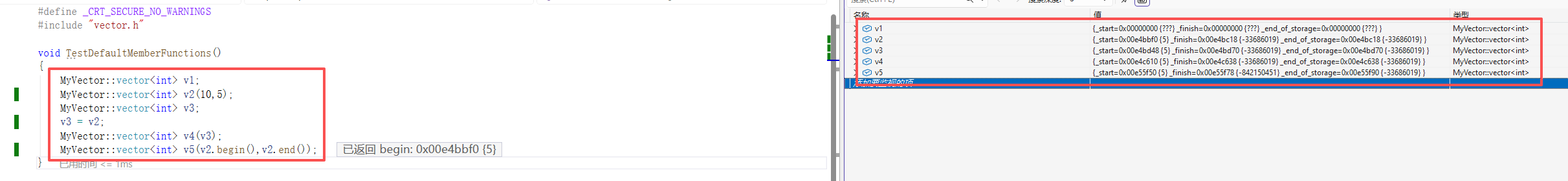 MyVector::vector<int> v5(v2.begin(),v2.end());