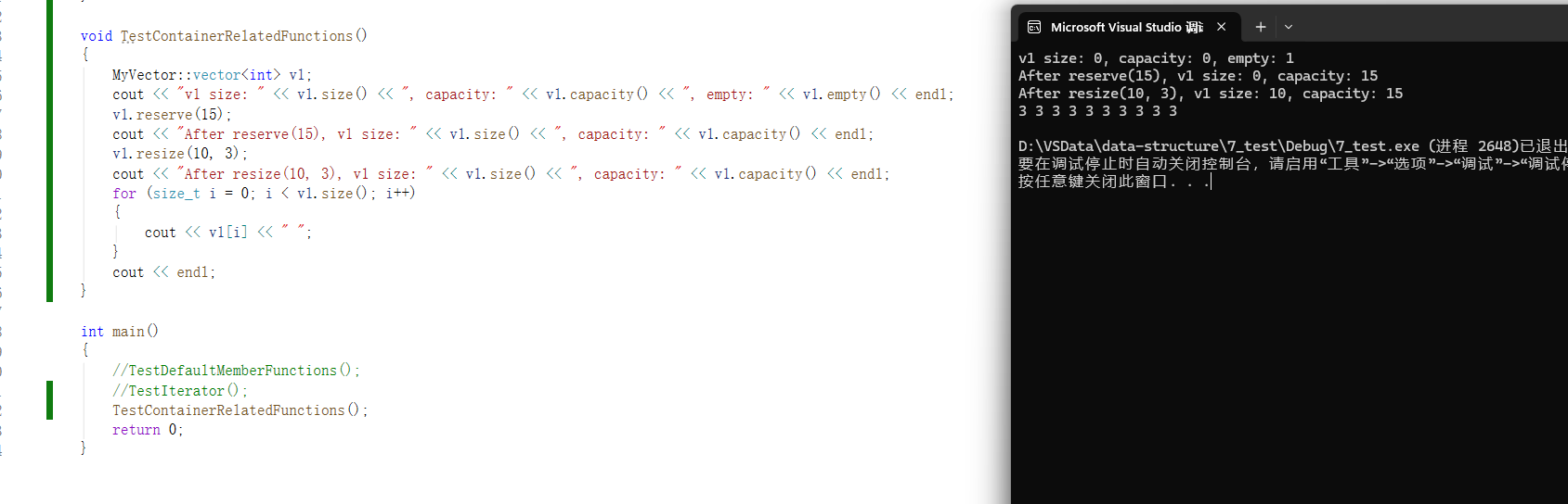 cout << "After resize(10, 3), v1 size: " << v1.size() << ", capacity: " << v1.capacity() << endl;