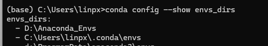 修改软件的安装的目录下的配置文件.condarc ,增加 envs_dirs 即可,修改即时生效