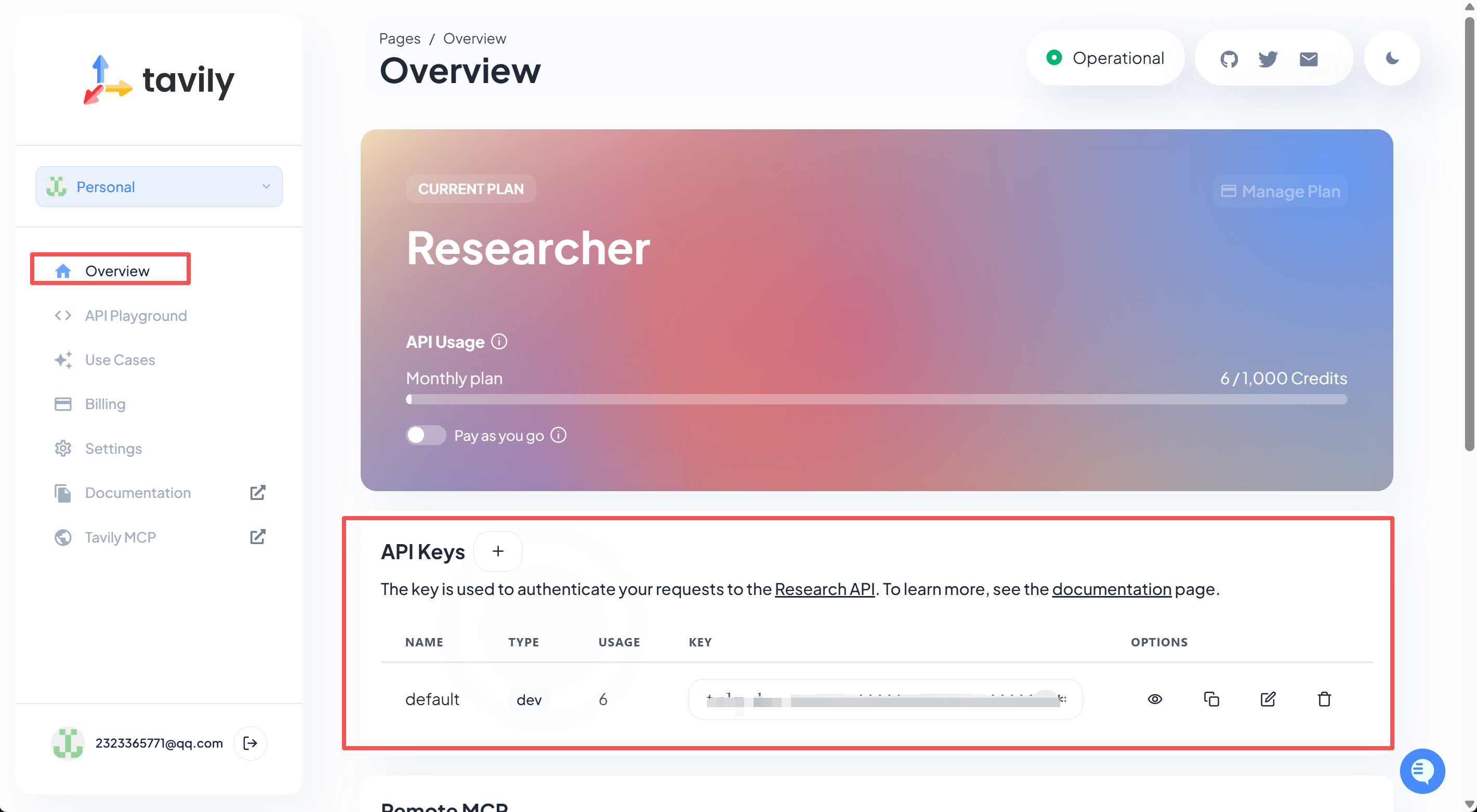 前往 tavily官网:https://www.tavily.com/注册并获得API-KEY(每月有免费额度)。用于联网搜索。