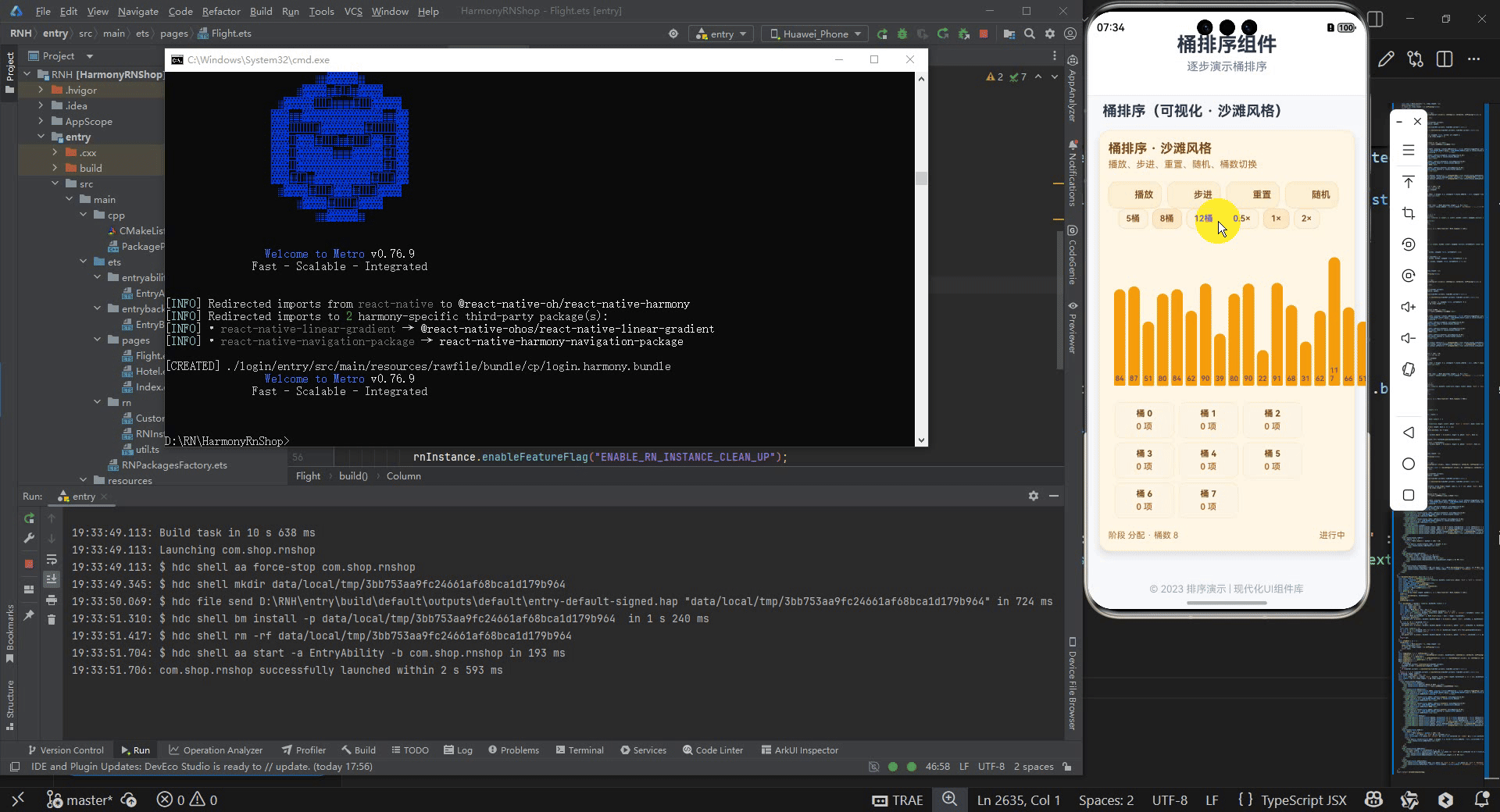 接下来通过打包命令npn run harmony将reactNative的代码打包成为bundle,这样可以进行在开源鸿蒙OpenHarmony中进行使用。