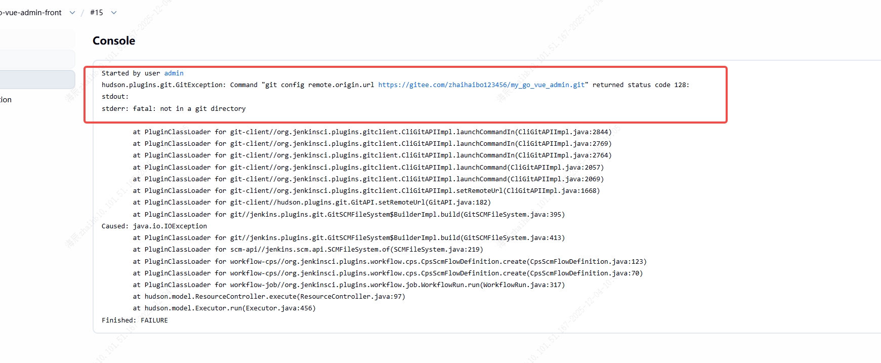 ②:还未进入流水线代码时,就报错:stderr: fatal: not in a git directory