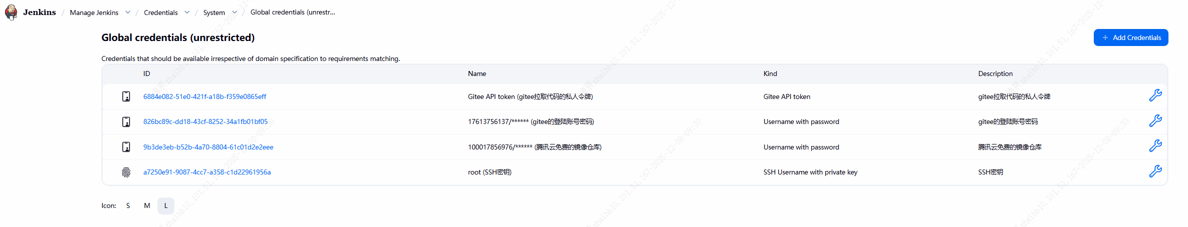 入口:Manage Jenkins > Credentials > System > Global credentials (unrestricted)