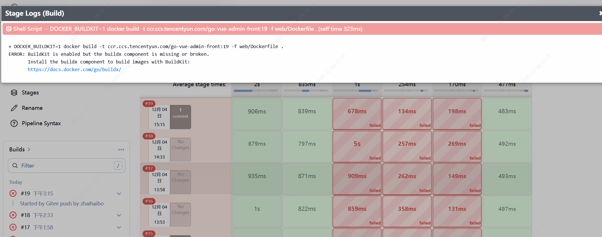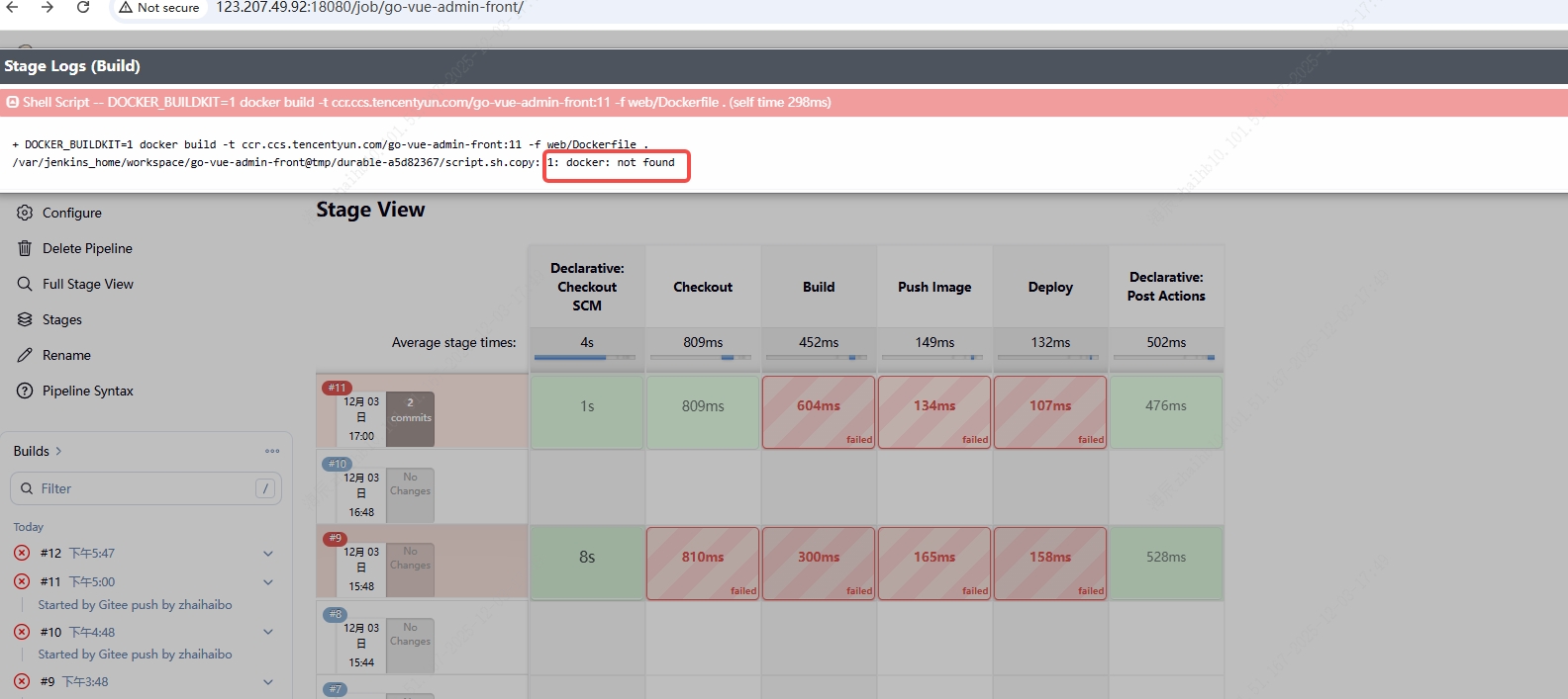 - [③:进入流水线docker build报错: dial unix /var/run/docker.sock: connect: permission denied](#③:进入流水线docker build报错: dial unix /var/run/docker.sock: connect: permission denied)