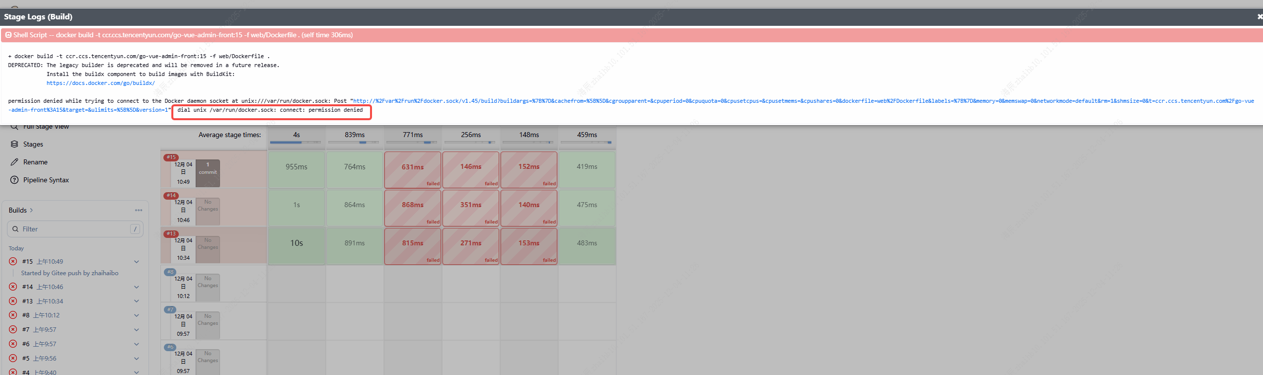 ③:进入流水线docker build报错: dial unix /var/run/docker.sock: connect: permission denied