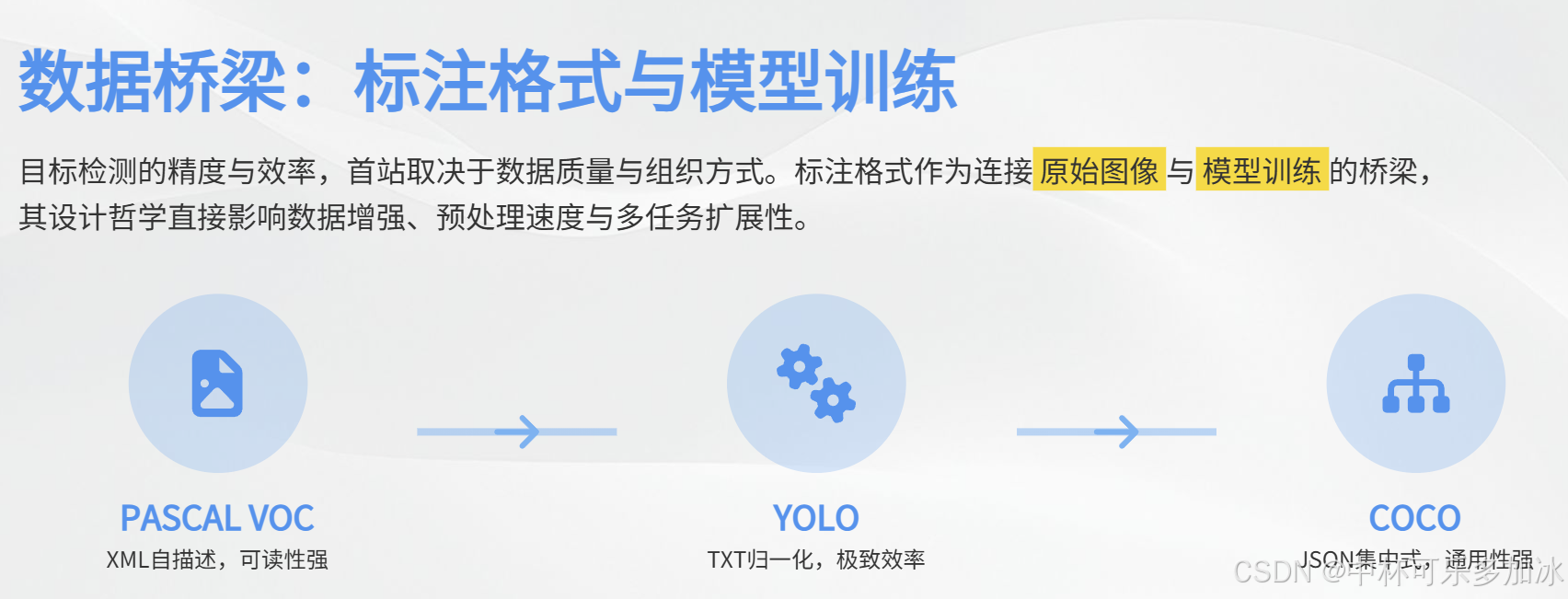 PASCAL VOC、YOLO 和 COCO 三种格式的差异,反映了目标检测技术发展中对数据处理效率 、模型兼容性 和任务多样性的不同侧重。