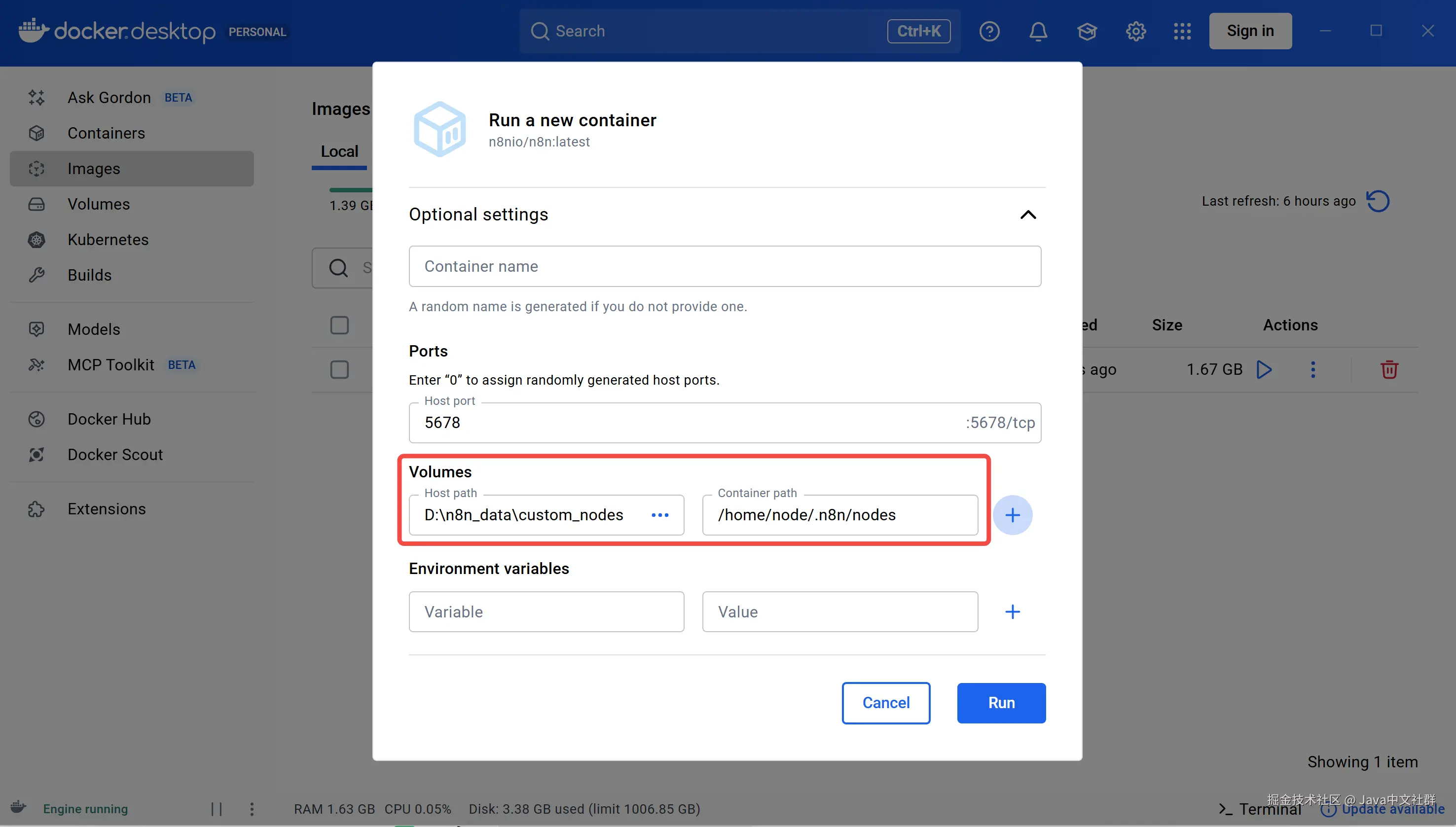 当你运行新版本的容器(点击 Run 或配置 Compose)时,需要添加一个存储映射。