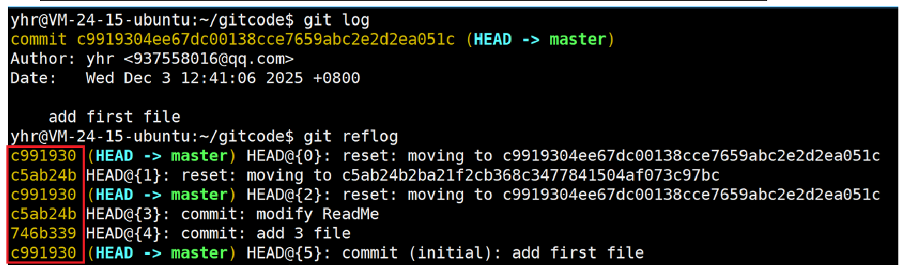 yhr@VM-24-15-ubuntu:~/gitcode$ git reflog