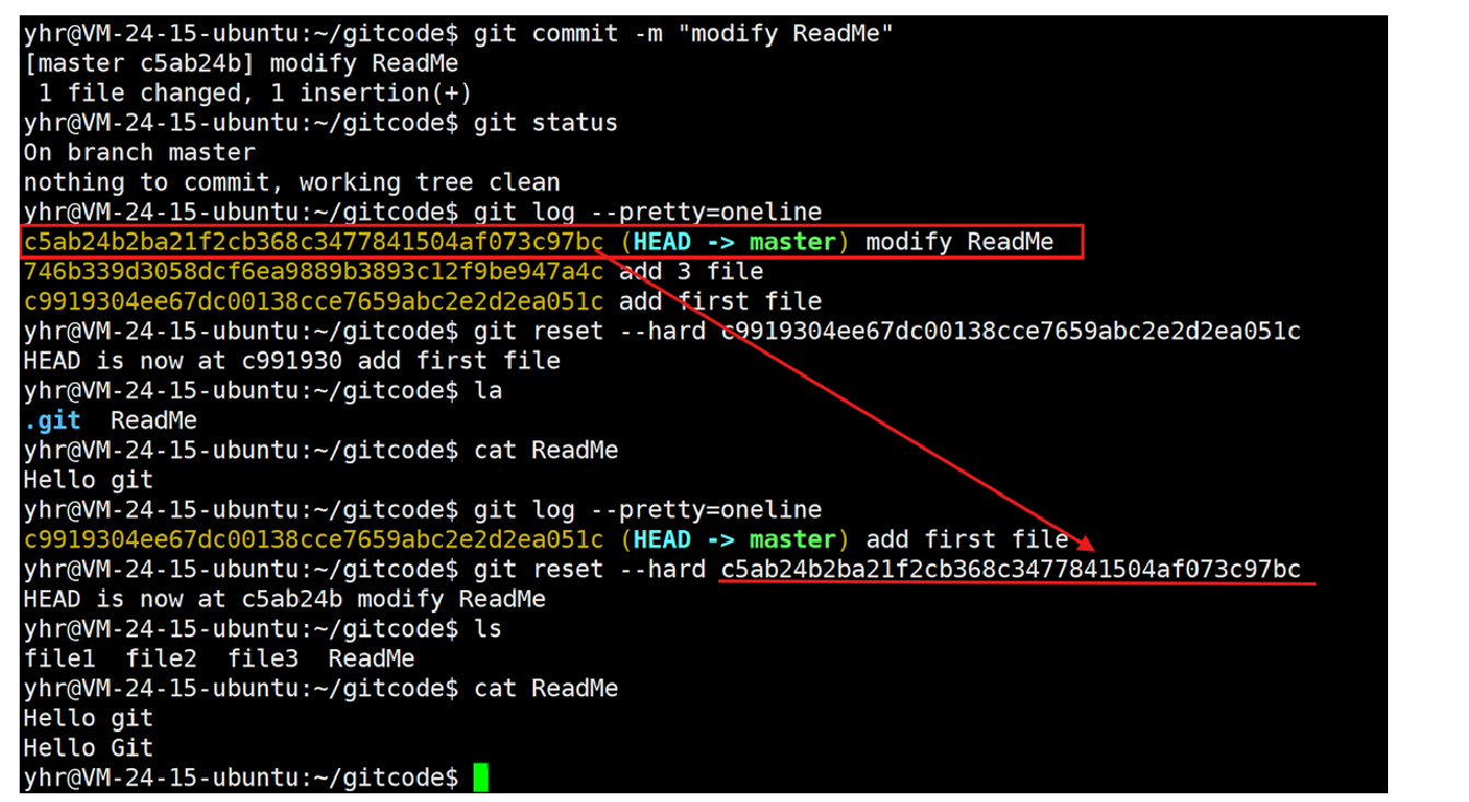 yhr@VM-24-15-ubuntu:~/gitcode$ git reset --hard c9919304ee67dc00138cce7659abc2e2d2ea051c