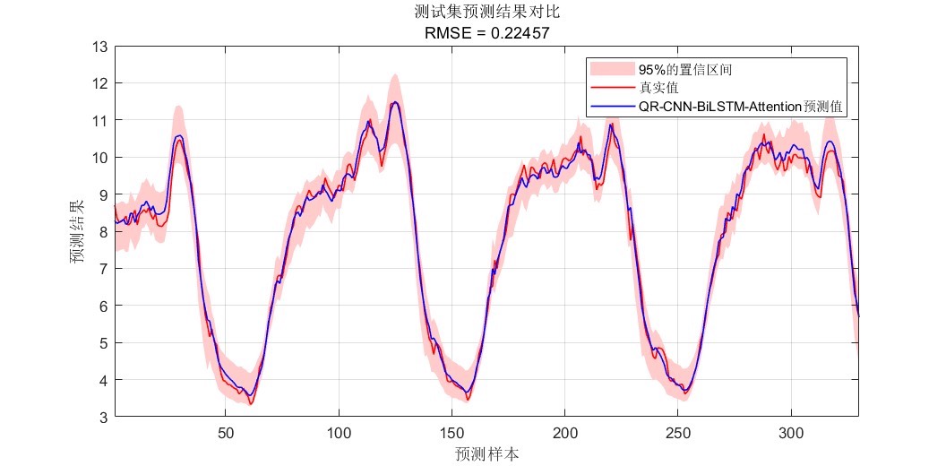 区间预测QRCNN-BiLSTM-MultiAttention基于分位数回归双向长短期记忆神经网络结合多头自注意力机制的回归区间预测 Matlab语言 程序已调试好,无需更改代码直接替换Excel运行你先用,你就是创新需要水文的抓紧 多变量单输出,回归预测也可换成时间序列单列预测(售前选一种),回归效果如图1所示~ 采用分位数回归QR方法实现区间预测,可自由调整置信区间,评价指标包括R2、MAE、MSE、MAPE、PICP、PIMWP 采用多头自注意力机制,知网上还没人用过此模型,网络结构图如图2所示,先用先发 Matlab版本要求在2023a及以上,没有的可提供安装包 注: 1.附赠测试数据,数据格式如图3所示~ 2.注释清晰,适合新手小白运行main文件一键出图~ 3.商品仅包含Matlab代码,后可保证原始程序运行 4.模型只是提供一个衡量数据集精度的方法,因此无法保证替换数据就一定得到您满意的结果~