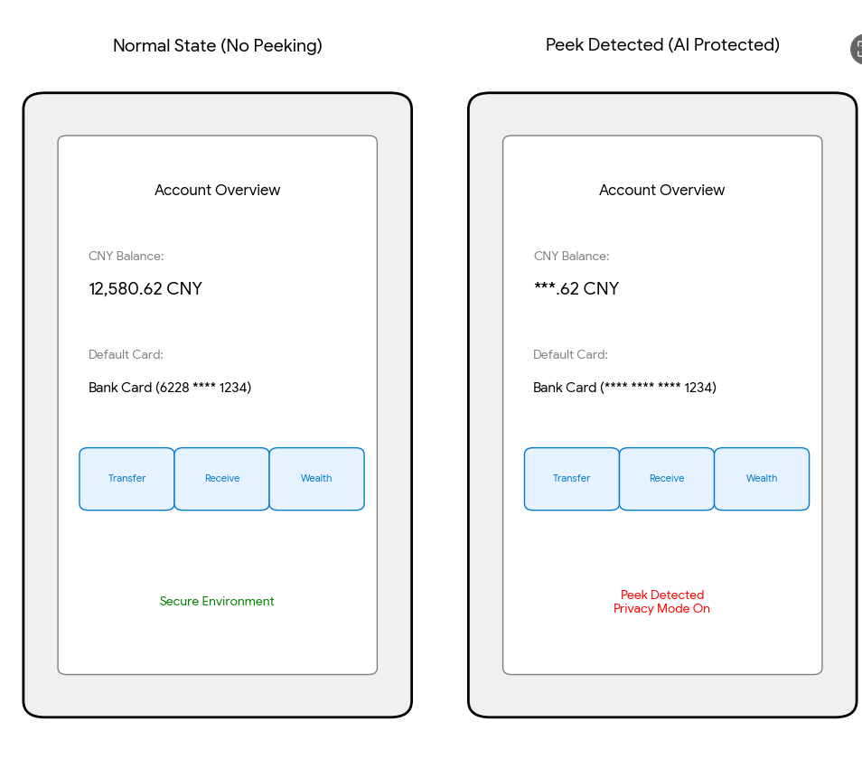 特性与场景强绑定:AI防窥不是简单模糊屏幕,而是要结合支付场景精准控制模糊范围与时机,避免影响用户操作