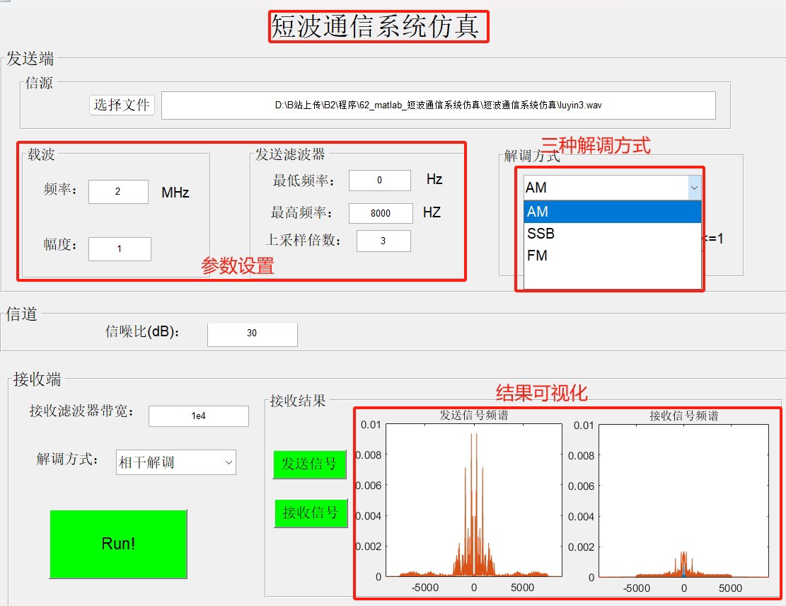 整个项目的GUI界面用MATLAB的GUIDE工具设计,代码量不大,但功能还算完整。如果你对短波通信感兴趣,可以自己动手试试,代码已经调通,直接运行就能看到效果。