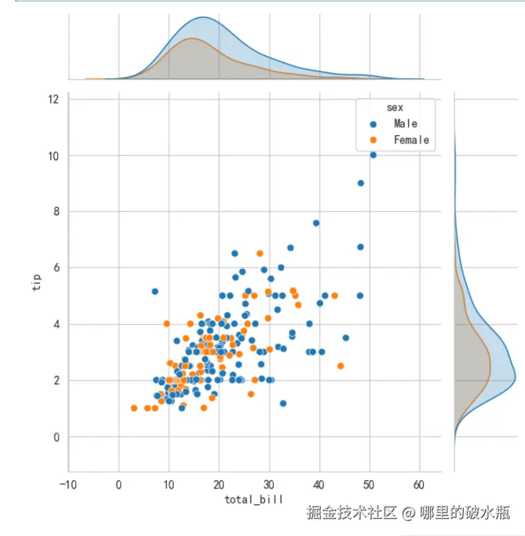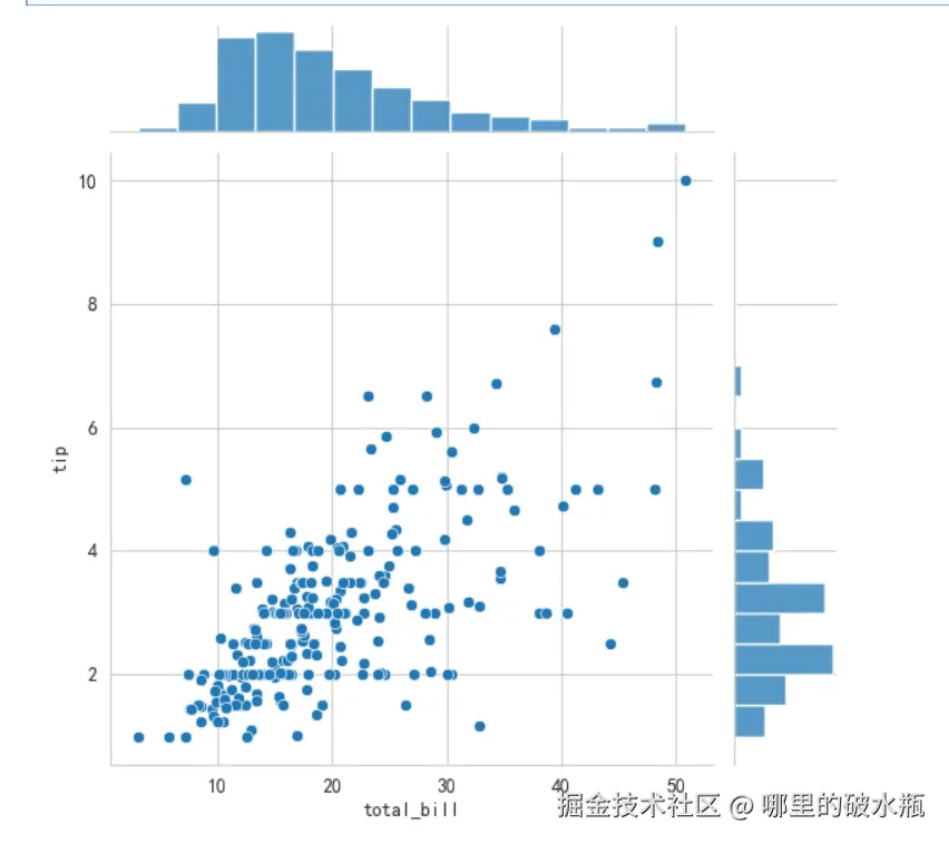 还有一种方式,带上直方图的散点图,注意它不需要和上面代码混合在一起,它自带画布等