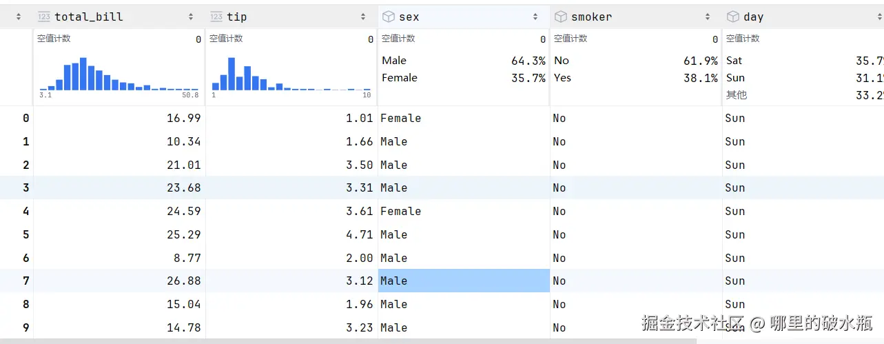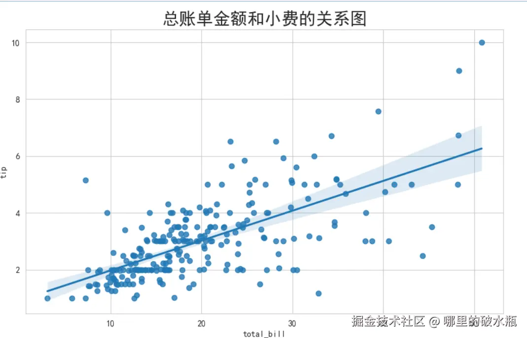 需求:描述总账单金额和小费的分布情况(散点图,关系图)
