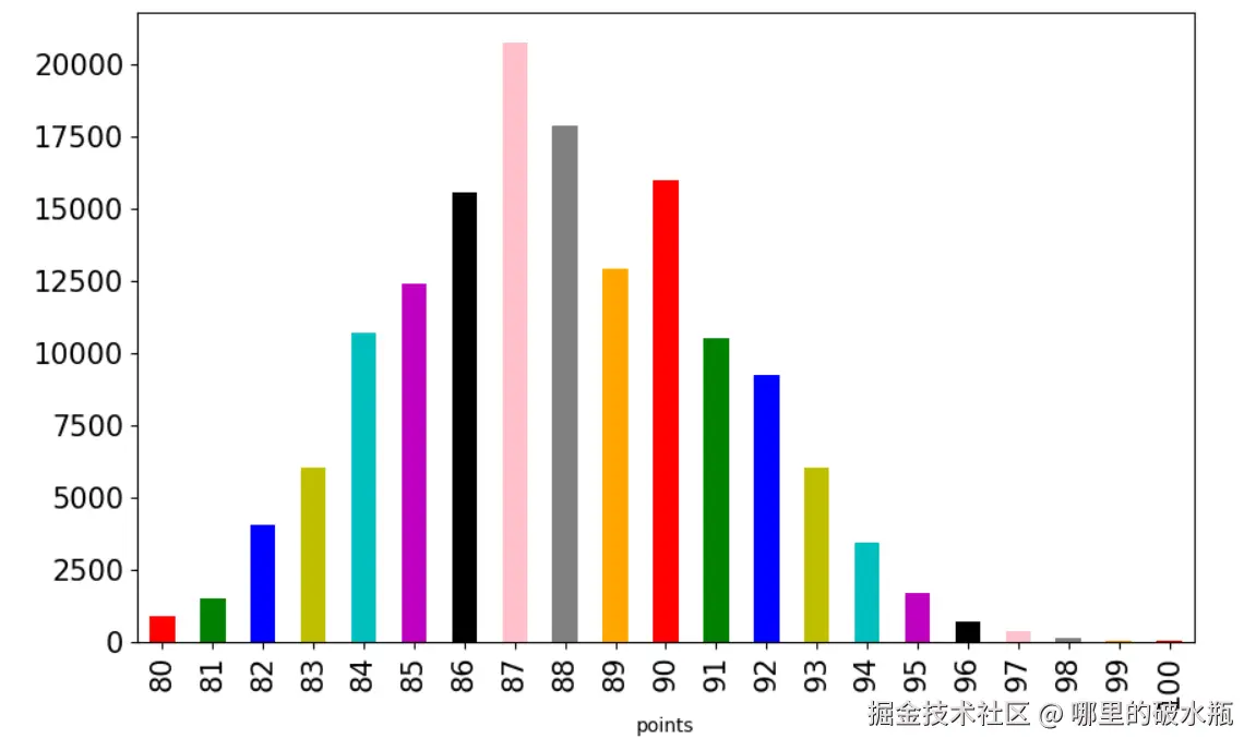 df['points'].value_counts().sort_index().plot.bar(**kwords) # 柱状图