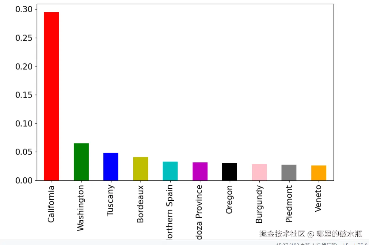 获取产葡萄酒最多的10个产地的 占比