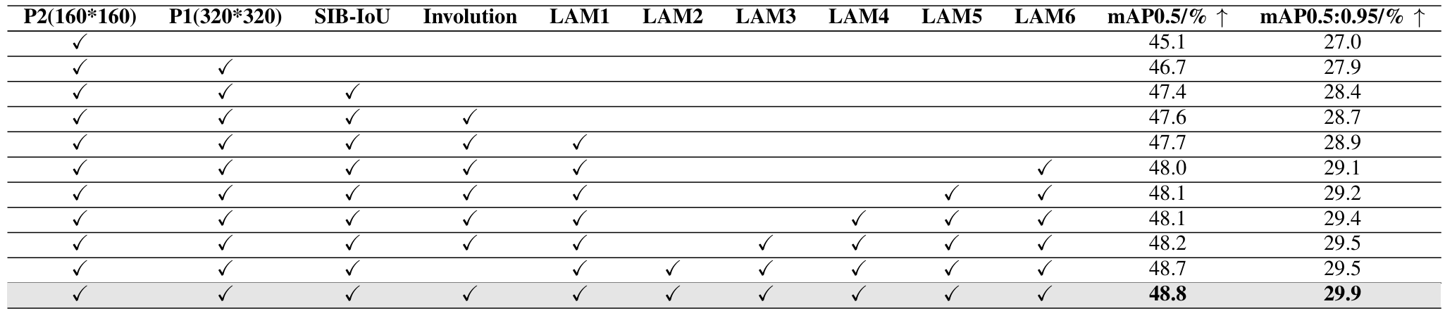 为了解决无人机航空图像中小目标面临的复杂性,本研究旨在通过改进特征提取、检测和训练策略来提高检测精度。我们提出了LAM-YOLO,它在YOLOv8架构的基础上,集成了多个照明遮挡注意力模块(LAM)。这种设计促进了深层和浅层图像信息的跨尺度融合,从而增强了模型进行精确定位的能力。我们利用Involution块来改进不同尺度特征图之间的交互,从而能够捕获细微的目标特征。为了优化模型训练,我们引入了一种改进的损失函数,以增强预测边界框的回归能力。此外,为了解决目标尺寸的不确定性问题,我们在原始检测头之上集成了一个用于小目标的辅助检测头,从而提高了检测极小物体的准确性。