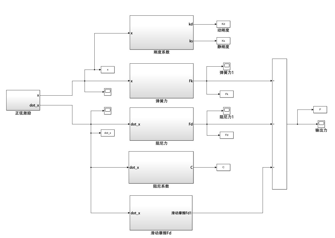 接下来,我们来看看如何在Matlab/Simulink中建立一个单气室油气悬架模型。这个模型可以帮助我们更好地理解油气悬架的工作原理。