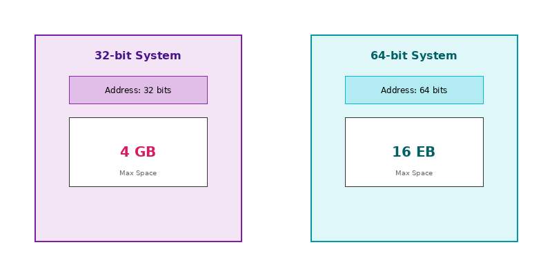 - 理论最大寻址空间:264=18,446,744,073,709,551,6162^{64} = 18,446,744,073,709,551,616264=18,446,744,073,709,551,616 字节 ≈16EB (Exabytes)\approx 16 \text{EB (Exabytes)}≈16EB (Exabytes)。
