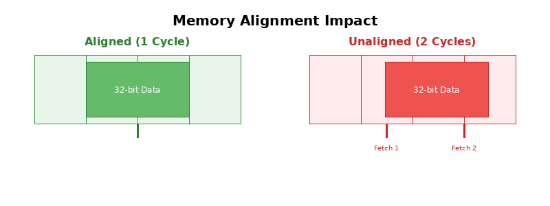 | 非对齐访问 | 2,500 | ~48% | 跨越缓存行边界导致惩罚 |