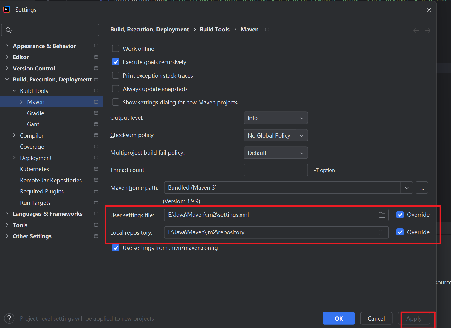 - 查看配置⽂件的地址,如上图所示、,Maven配置文件地址为: D:\Maven\.m2\settings.xml