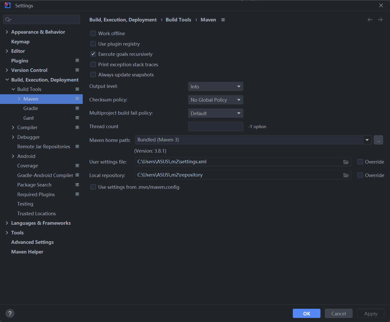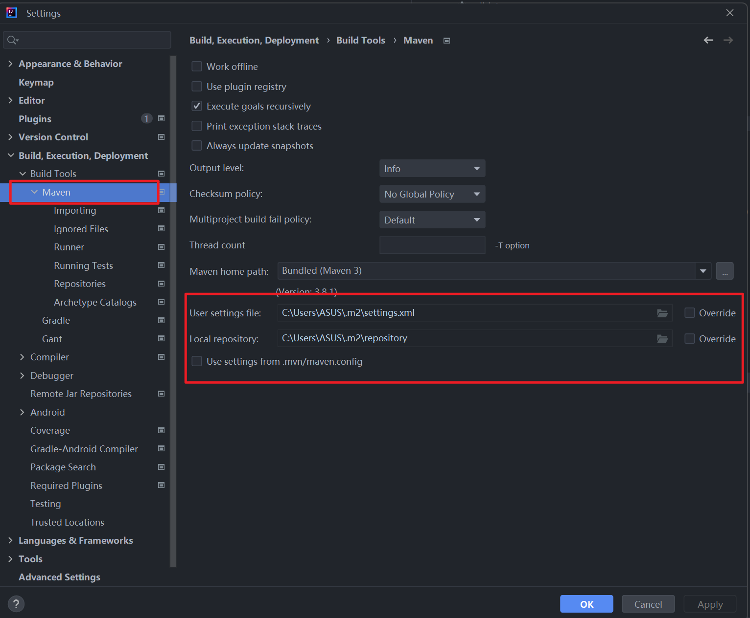settings和repository 可以修改设置为其他路径,两个路径不要有中文