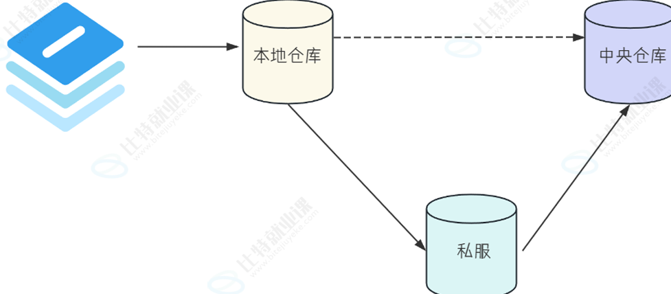 如果中央仓库中存在,就先缓存在私服上之后,再缓存到本地仓库里,再为Maven的下载请求提供服务私服是很多人在使用的,所以只需要第⼀个使用者下载一次就可以