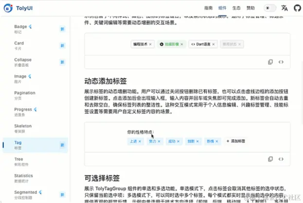 TolyUI 的 tolyui_tag 模块正是为此而设计。它不仅提供了基础的标签展示能力,还支持可关闭、可选择、动态添加等高级功能。通过合理的 API 设计和灵活的配置选项,让开发者能够轻松应对各种标签使用场景。其中包含两个核心组件: