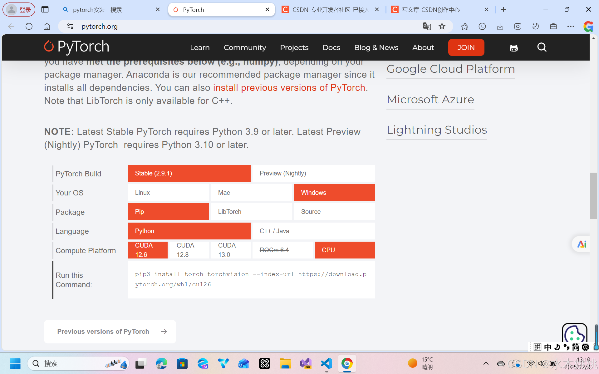 一:PyTorch在Microsoft windows 11下的安装