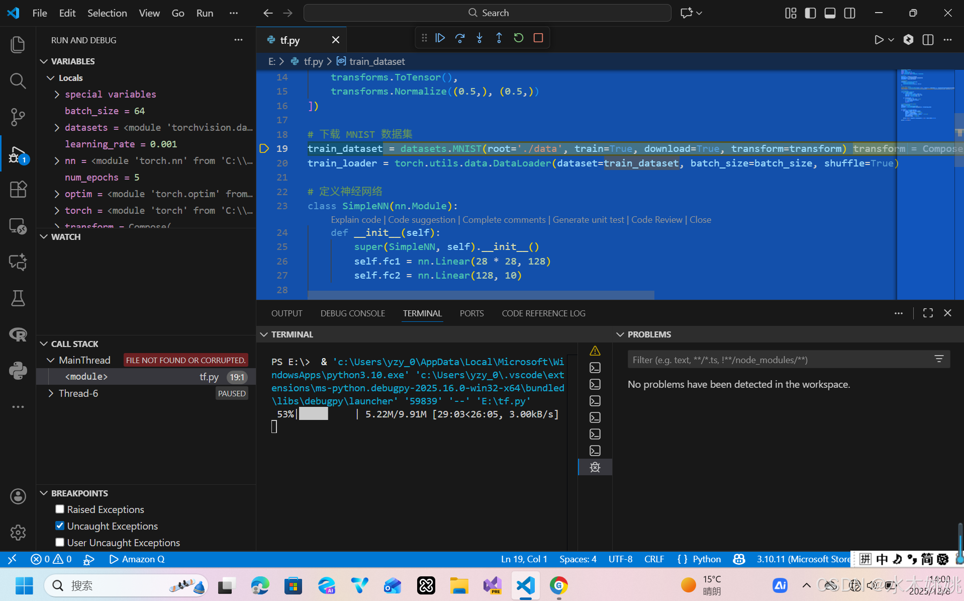 可以用AI编程工具自动生成一段应用PyTorch的代码,或者ChatGPT也行。将代码放入VScode进行调试。