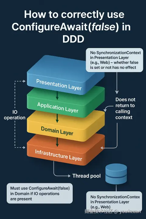 在 DDD 中如何正确使用 ConfigureAwait(false):原理、误区与最佳实践