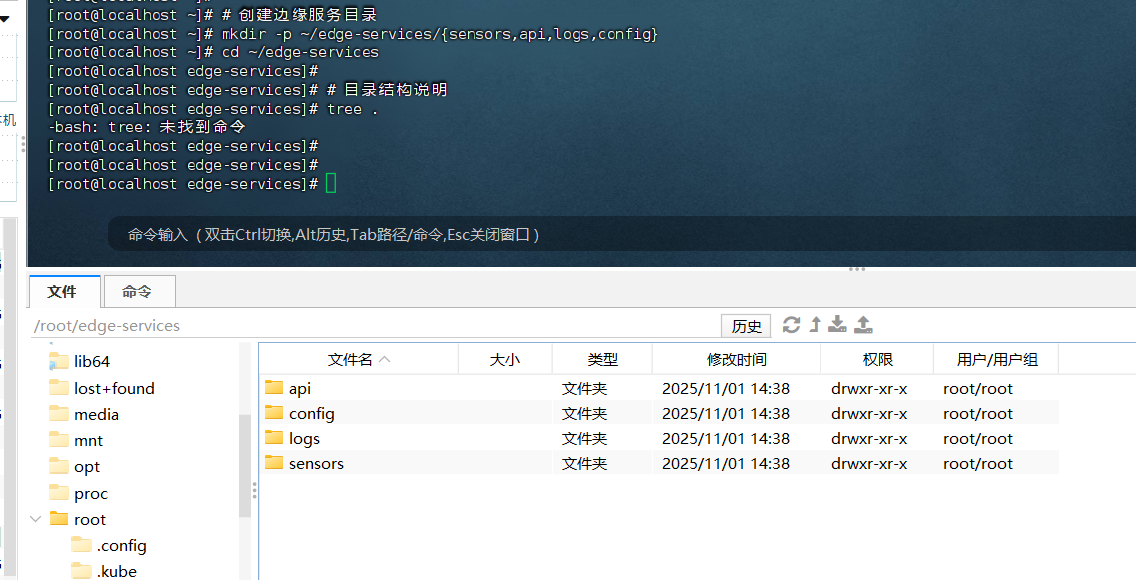 mkdir -p ~/edge-services/{sensors,api,logs,config}