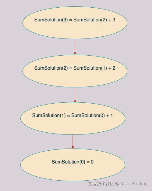 递归可以模拟出循环,⼏乎所有的for 循环操作,都可以以递归的⽅式实现。每⼀次递归,我们让n 减少1 ,直到减少为0 。