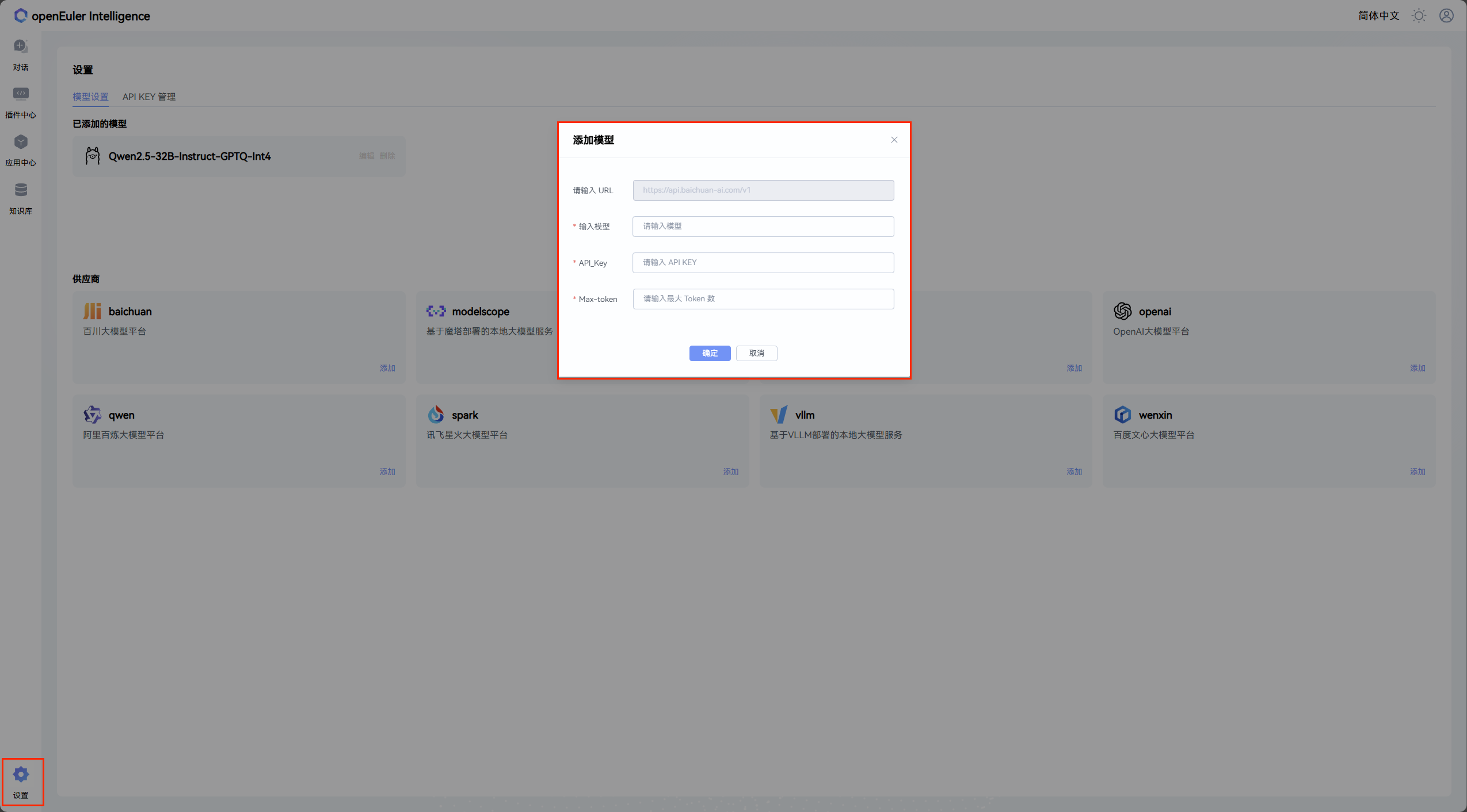 用户可以点击左下角的设置按钮进入模型配置页面