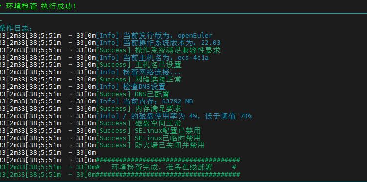 在测试环境中,SELinux和防火墙的严格策略可能会阻止K3s(Kubernetes)及相关服务之间的正常通信。部署脚本确认它们已被禁用,这主要是为了简化部署流程,避免因权限和端口问题导致的失败。在生产环境中,通常会选择配置精细的防火墙规则而非直接关闭。
